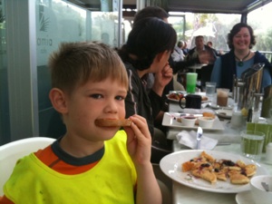 Yesterday we all got together at Zamia for breakfast for the last time before my last knee operation. Afterwards of course we had a short play at the blue playground, and as we walked back to our cars Thea took Rob’s hand. Afterwards he said that it felt like she was comforting him, which is very prescient of her because he is hurting at the thought of me going through the post-knee-replacement suffering all over again.