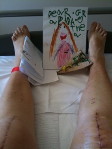 Yesterday Rob brought me home from hospital, and we quickly set up my healing nest where it had been after my left knee replacement.