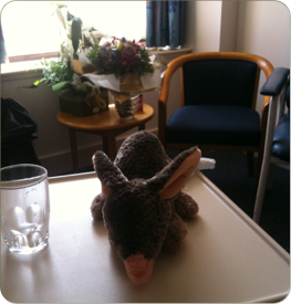 There were all the lovely flowers that friends and family had gifted me with. The “Grandma Bilby” that Thea had given me when I had my left knee replacement. The matching scars on my knees, the left one healing nicely now after all the trauma of that recovery. And my bedside chair where EVERYTHING had to stay in reach.