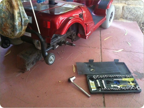 Then we all got home safely and the gofer went into the pit stop where Rob unbolted the tyre from the axle when he got home!