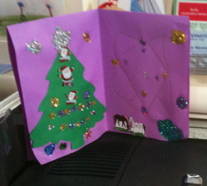 And Thea made the most of the ample supply of craft materials and made me a delightful Christmas card:-)
