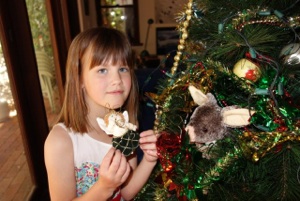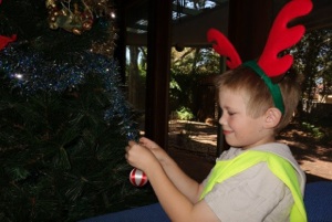 T1 and T2 stayed the night with us, and this morning they decorated the Christmas tree, and their bedroom. They wore reindeer ears for part of the time, and T2 had to make a nest in the tree for the Grandma Bilby that she gave me in hospital after my knee replacements.